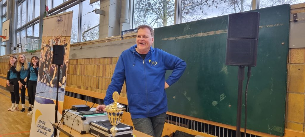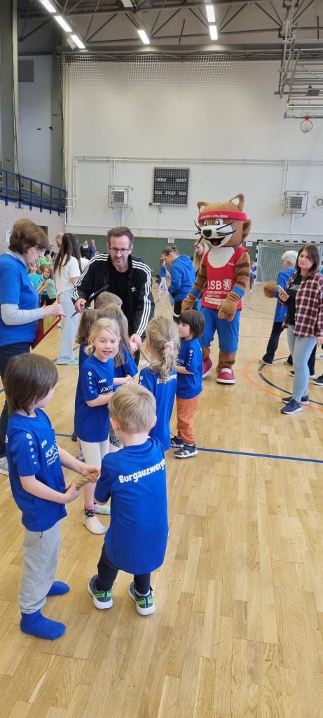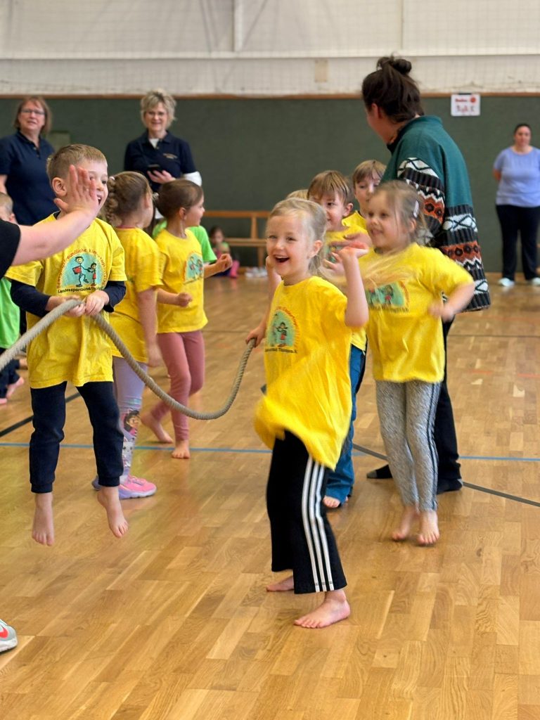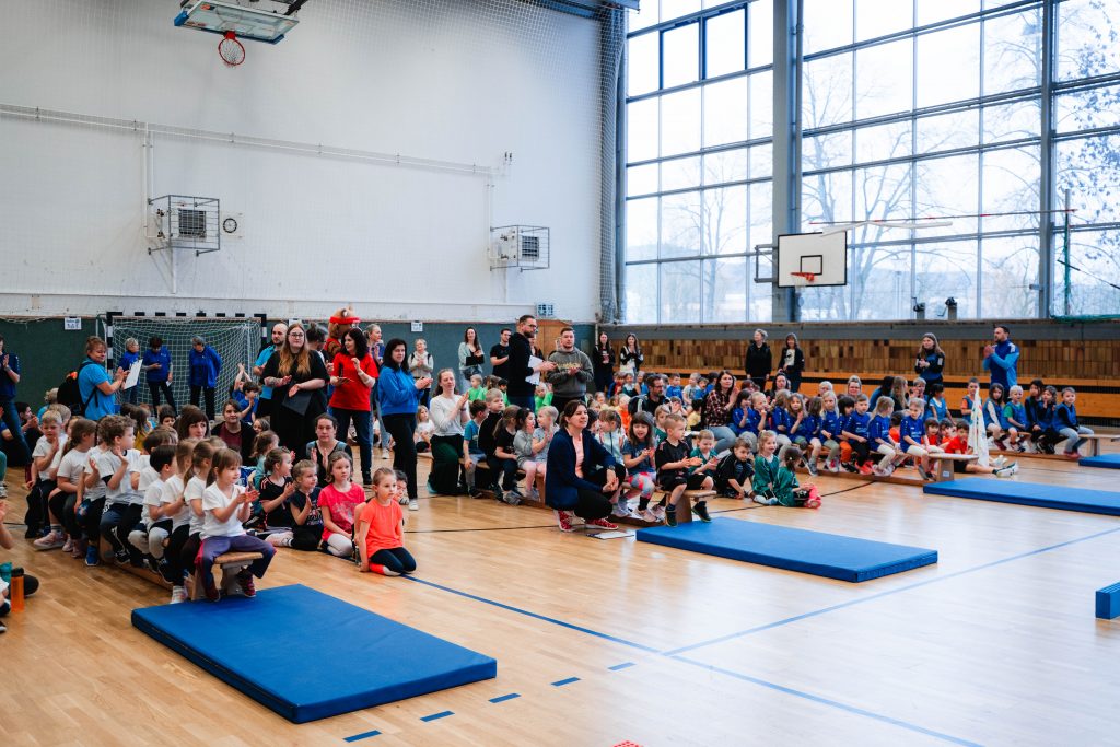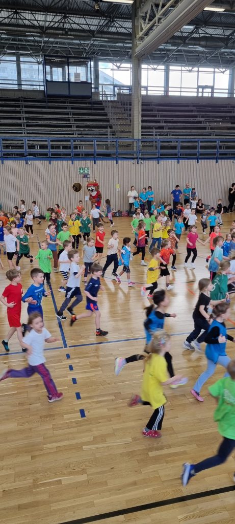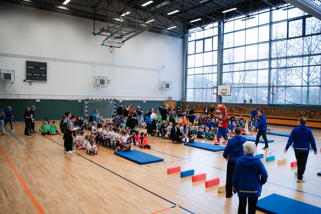 Bereits zum 16. Mal trafen sich am vergangenen Dienstag 20 hochmotivierte Kindergartenteams aus Jena und Umgebung im Sporthallenkomplex Lobeda-West zur großen Kinderolympiade. Rund 250 Kinder nahmen an diesem sportlichen Event teil. Die Teams stellten sich in insgesamt fünf spannenden Wettkämpfen sportlichen Herausforderungen. Auf dem Programm standen unter anderem ein Hindernisparcours, ein Staffellauf, koordinative Übungen und das beliebte Tauziehen. Auch der jährliche Kreativwettbewerb durfte nicht fehlen! Unter dem Motto „Olympische Winterspiele“ gestalteten die Kitas mit viel Fantasie und Herzblut eigene Leinwände, die nun die noch weißen Wände unserer neuen Geschäftsstelle verschönern werden. Es war wunderschön, wieder so viele sportliche und glückliche Kinder zu erleben. Natürlich war auch das Maskottchen vom Landessportbund Thüringen mit dabei und feuerte unsere kleinen Sportlerinnen und Sportler kräftig an.